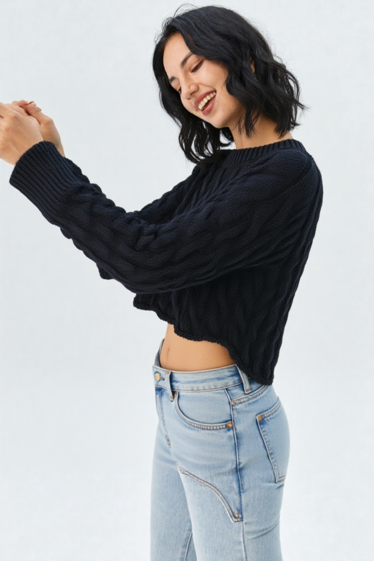 Örgü Detaylı Crop Triko Kazak